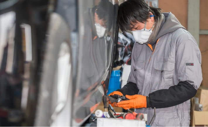 山栄自動車サービスでは、お引き渡しまで一貫して対応することで、外部への依頼を最小限に抑え、中間コストの発生を抑えながら、納期面でも無駄が出にくい体制を整えています。